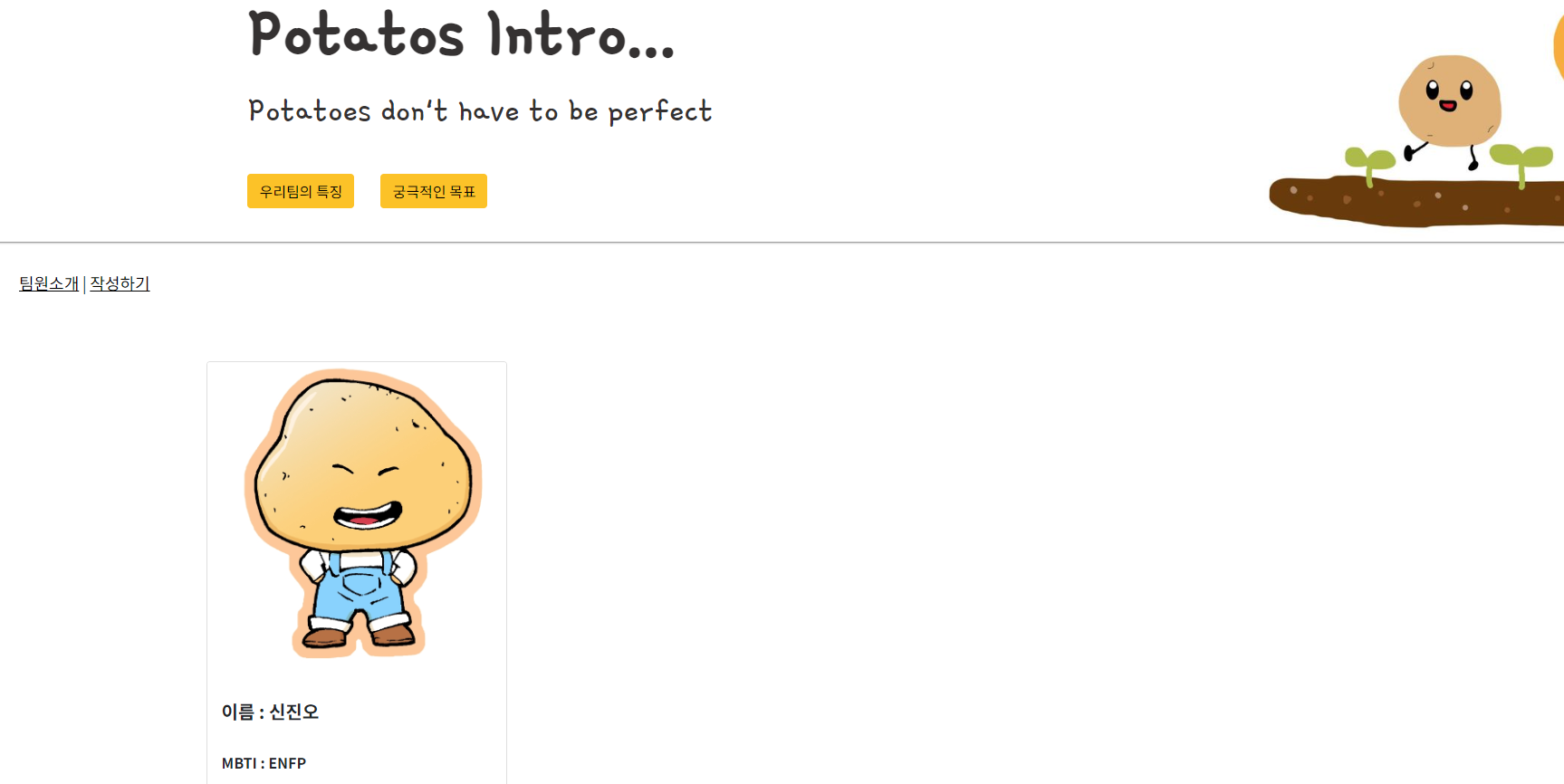 1. 프로젝트 명 : 우리팀, 우리만의 이야기를 담을 수 있는 "팀 소개 웹페이지"